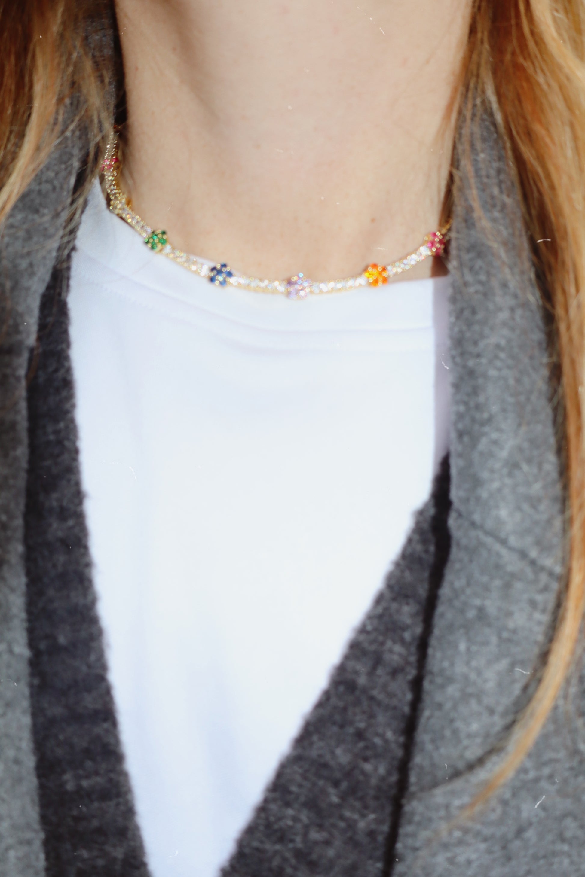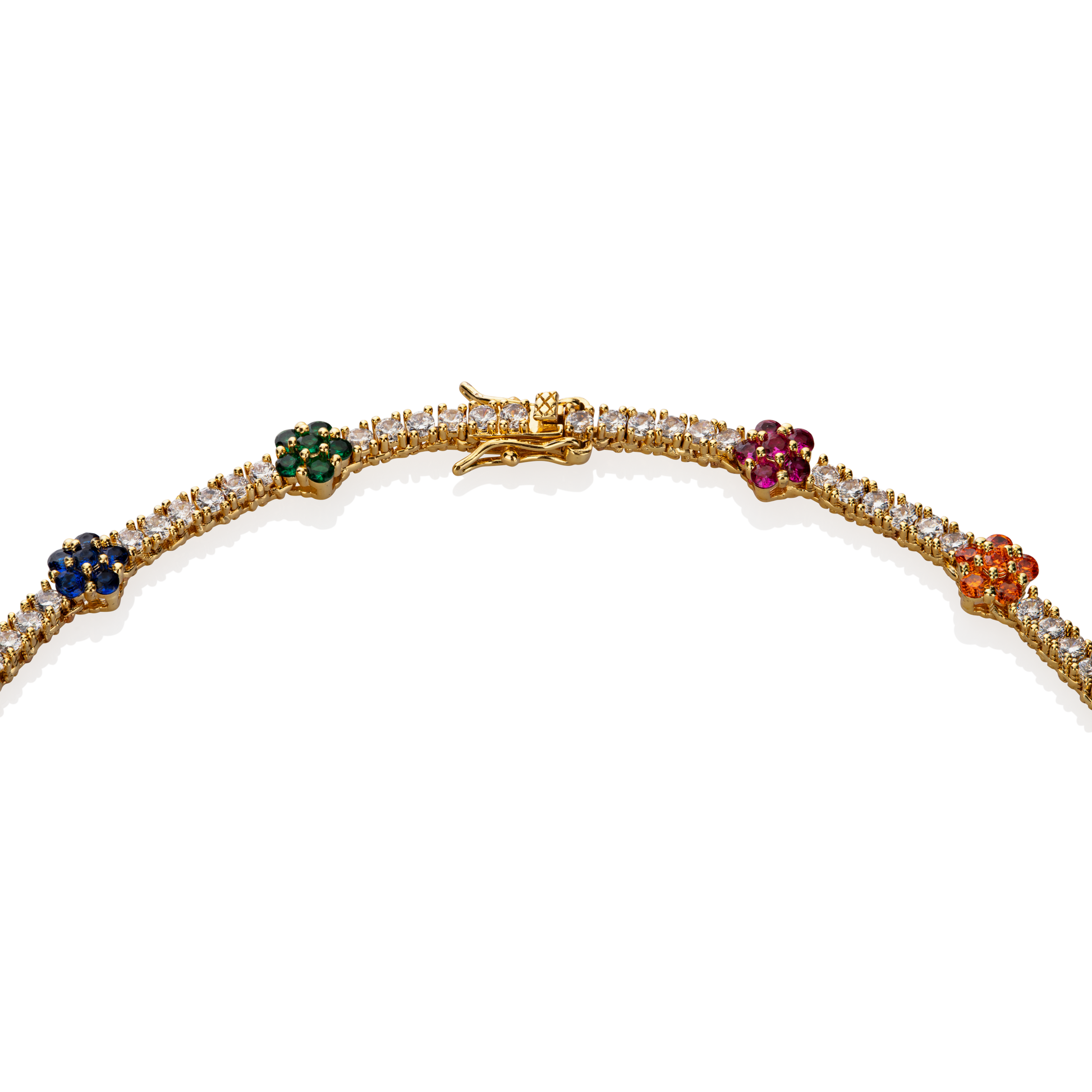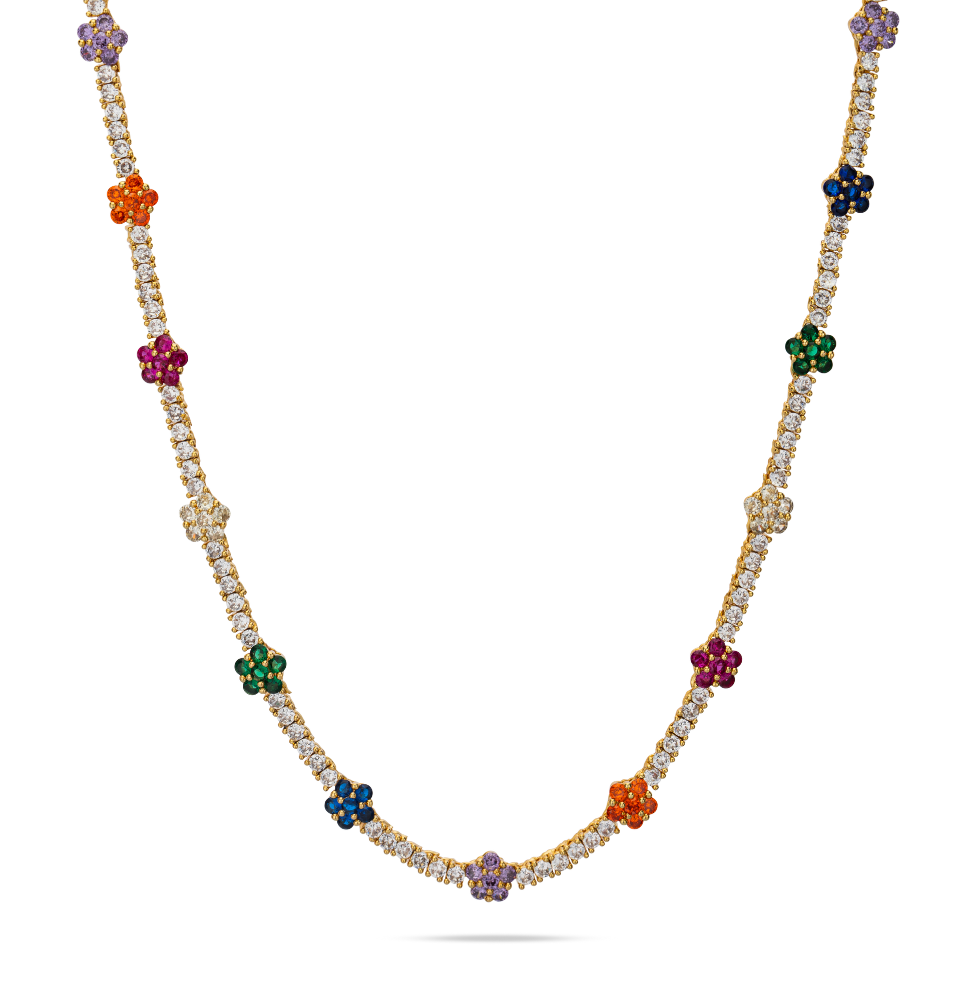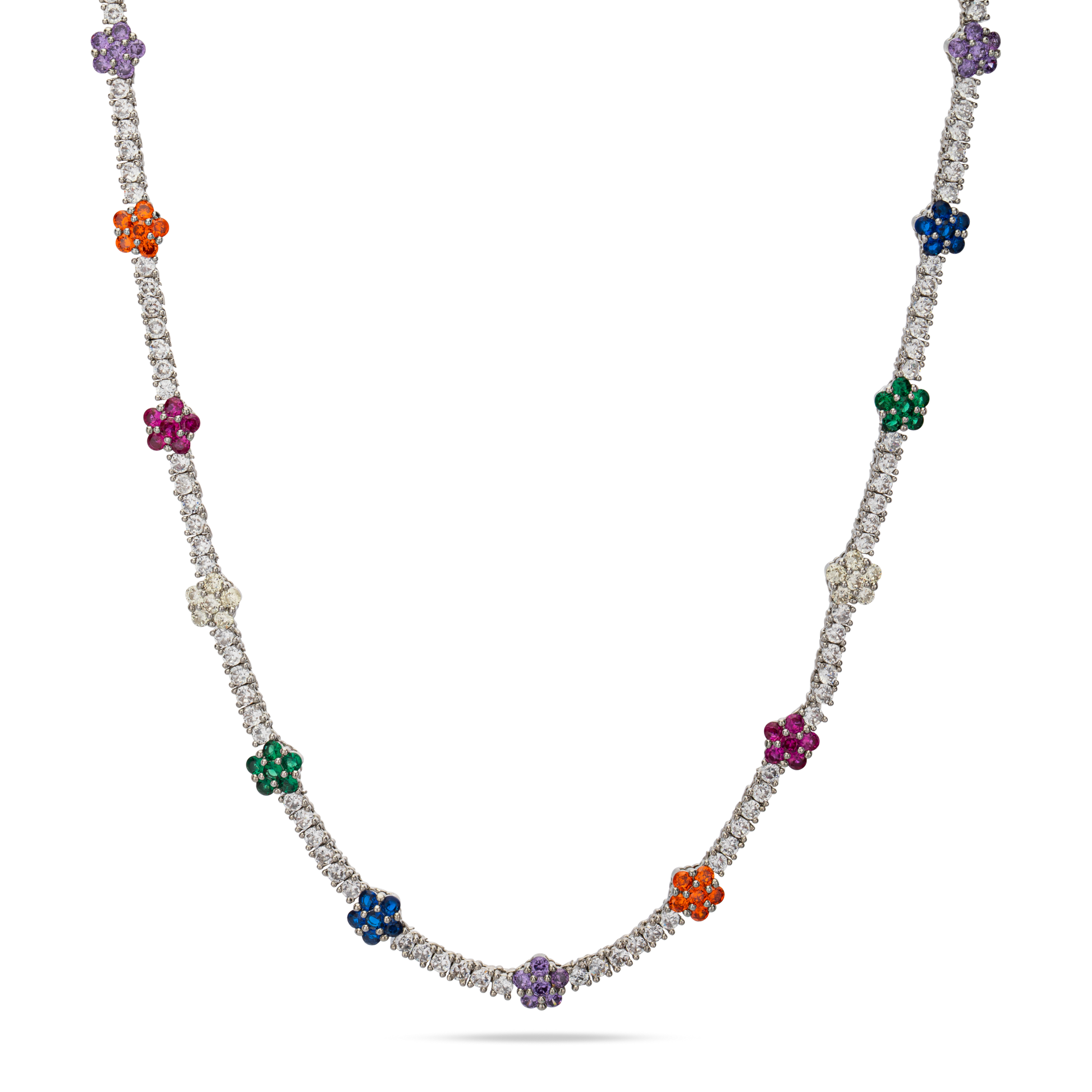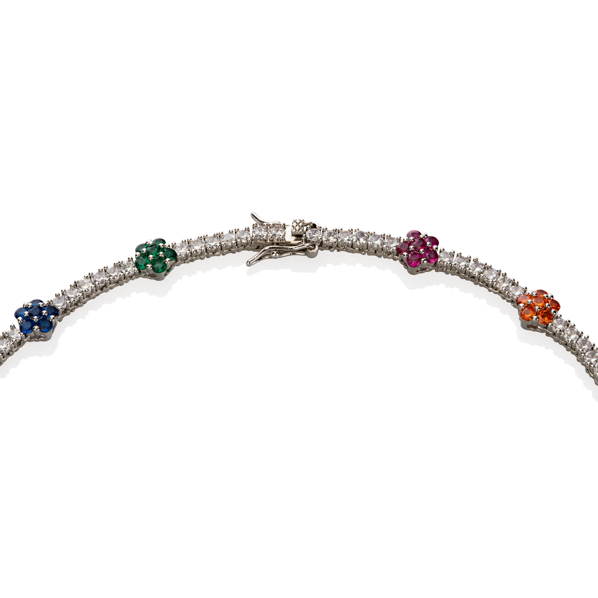 .שרשרת טניס בשיבוץ זרקונים ובשילוב פרחים צבעוניים לכל אורכה