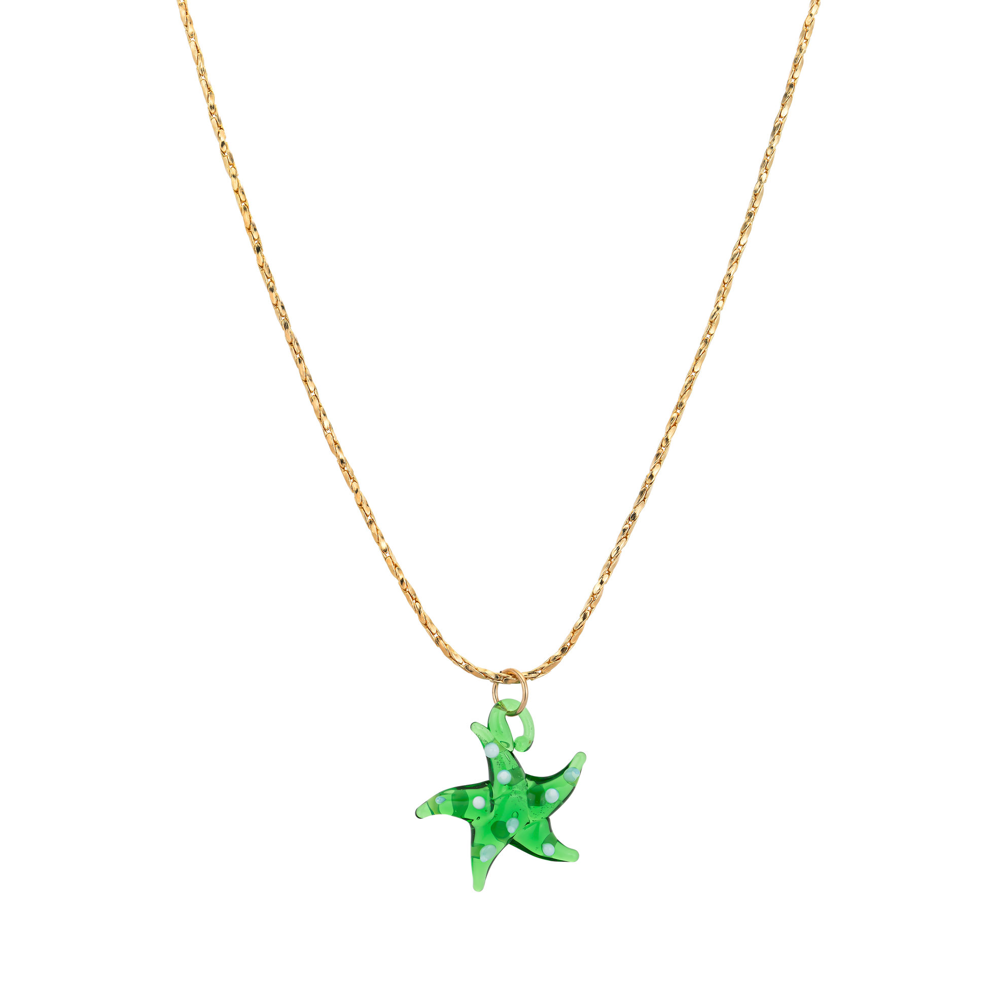 שרשרת בשילוב תליון כוכב מקריסטל בגוון ורוד/ירוק.
